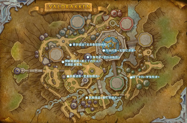 瓦德拉肯联军的名望商人位于10.0的新主城瓦德拉肯,一共有8位: