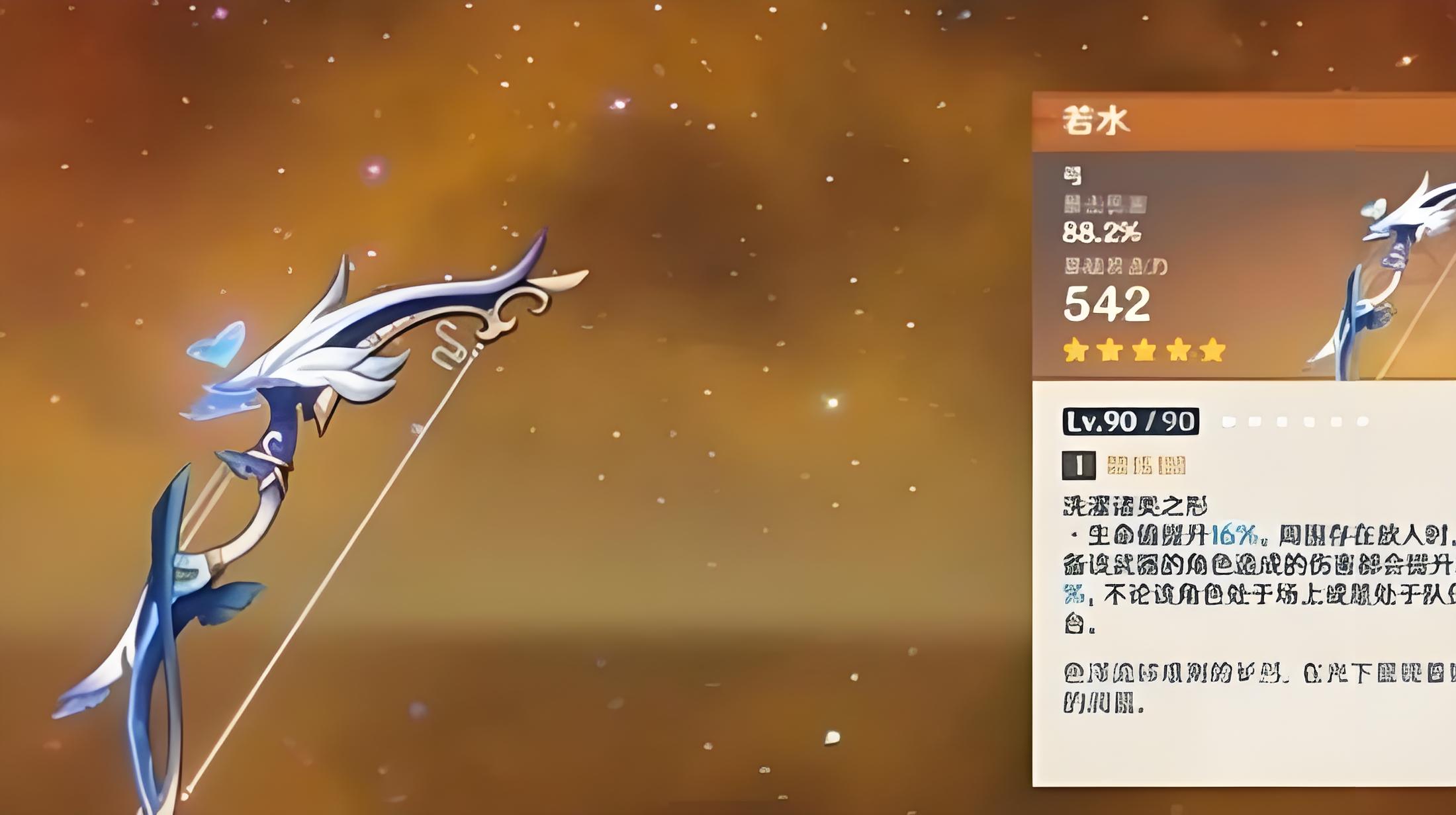 2、若水暴击伤害突出,满级基础攻击力五百四十二,暴击伤害加成高达八十八,同时提升十六生命值与元素伤害。