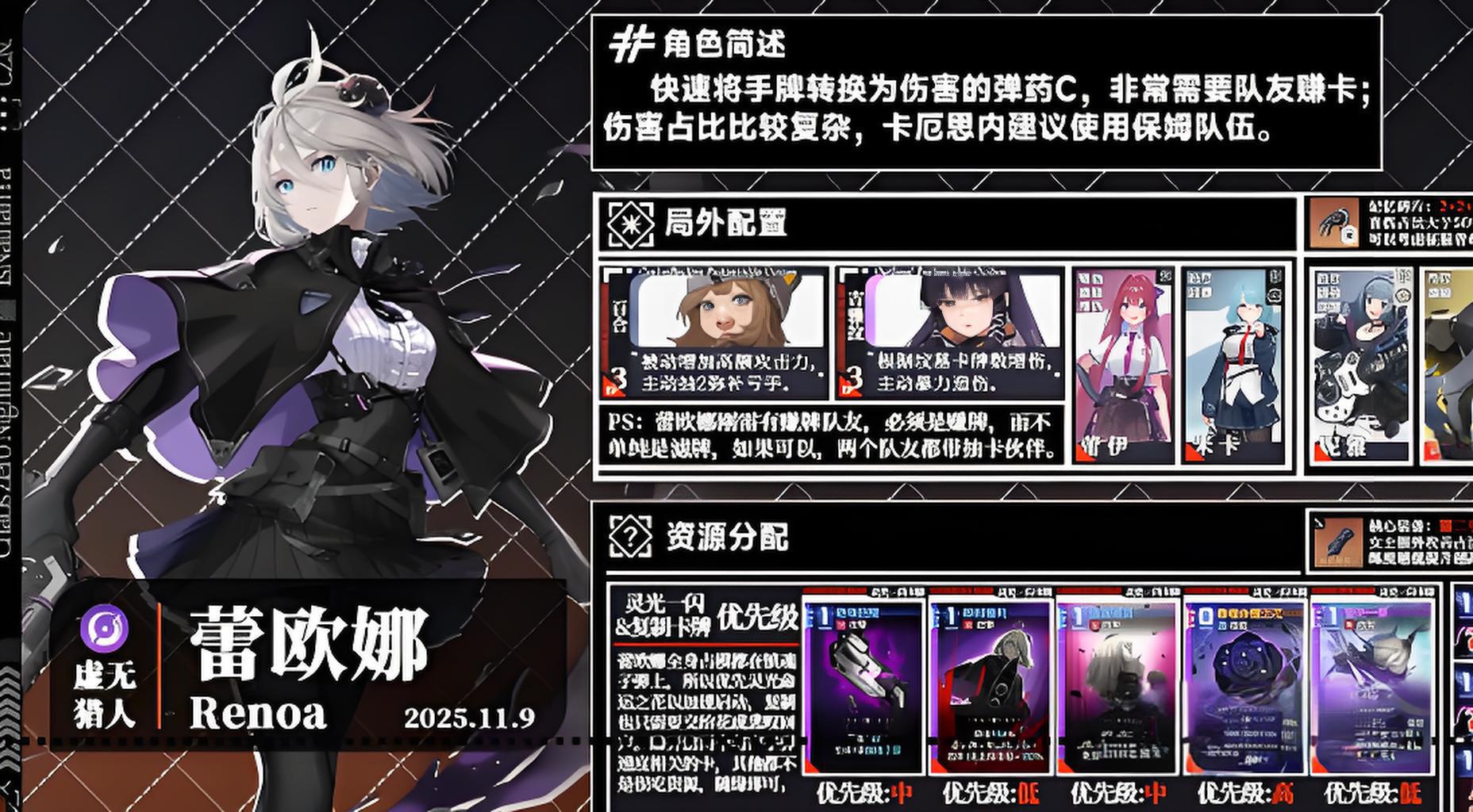 5、前期积累镇魂子弹后期集中爆发,起手优先使用核心技能储备资源,队友选赚卡或提升检索效率辅助,双队友带抽卡伙伴最优。