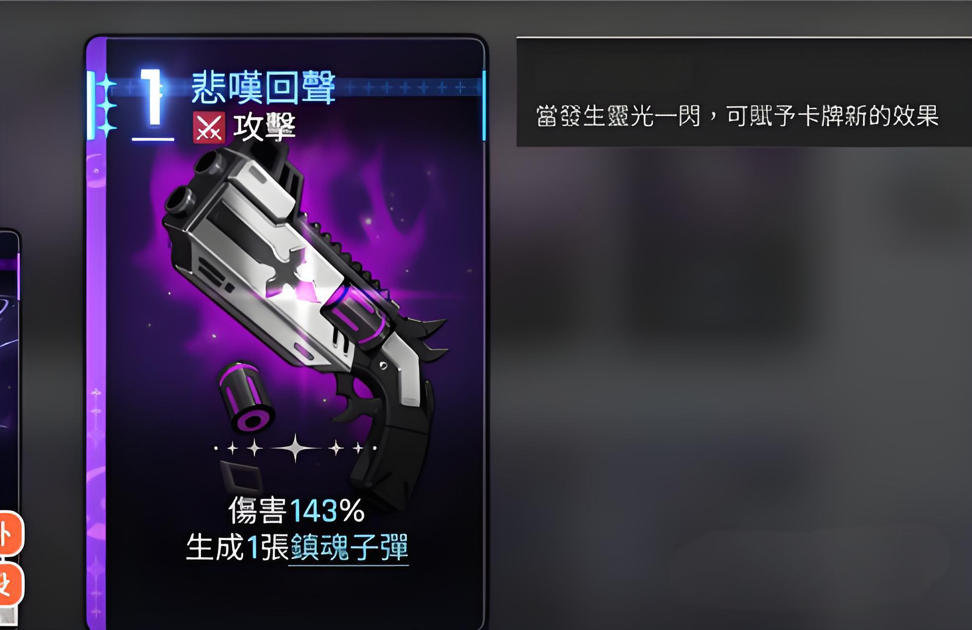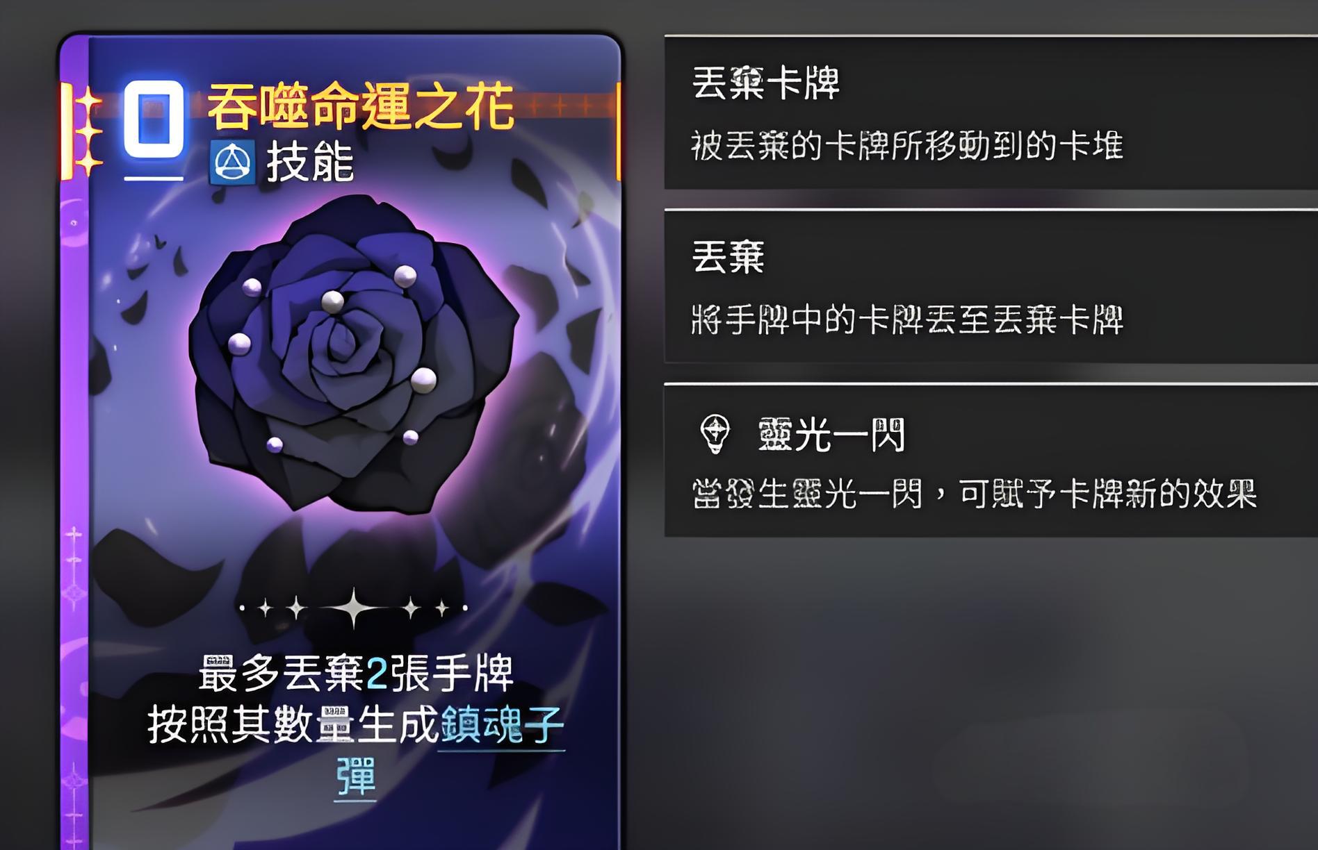 3、吞噬命运之花能丢弃最多2张手牌换镇魂子弹,灵光一闪状态提升伤害至250%,第四张子弹转技能卡第五张进入强化阶段。