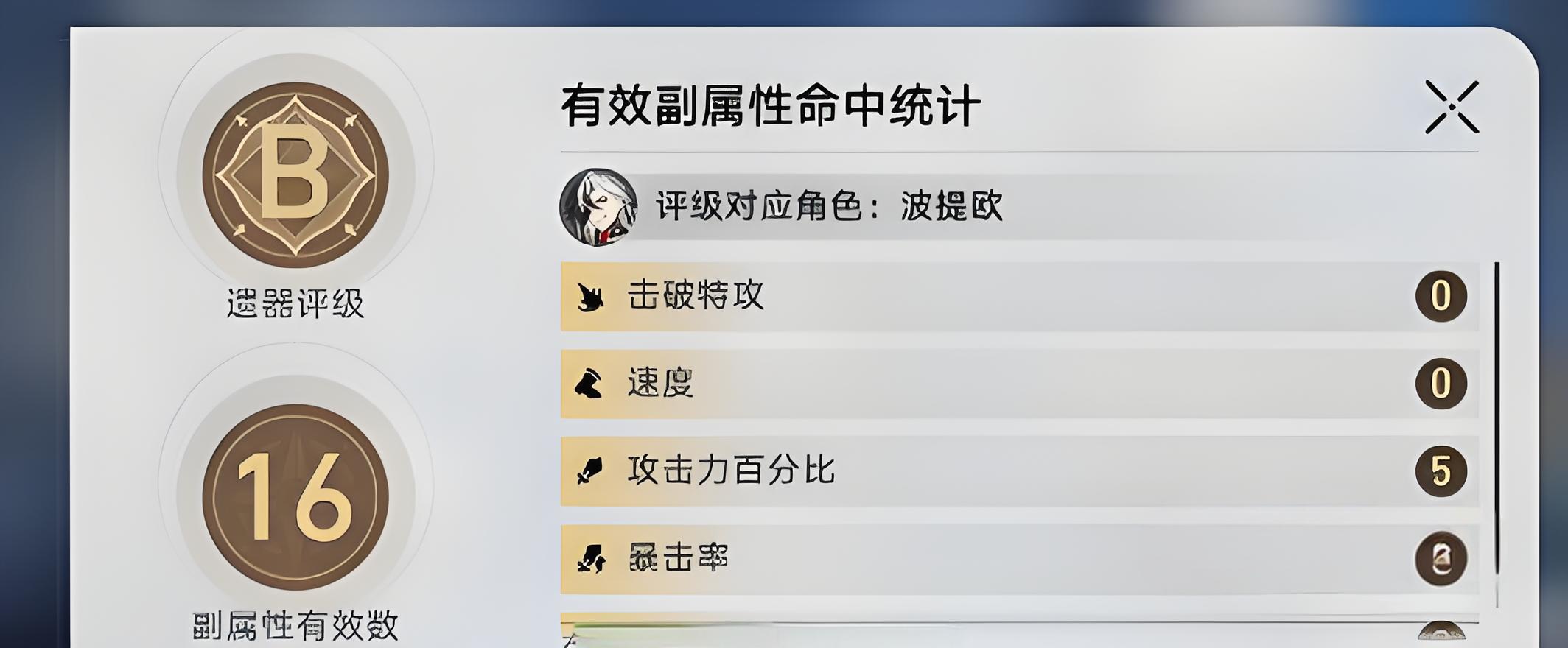 4、遗器评级由副属性有效数决定,有效副属性命中数量越多评级越高,高品质遗器能为角色带来更显著的战力提升。