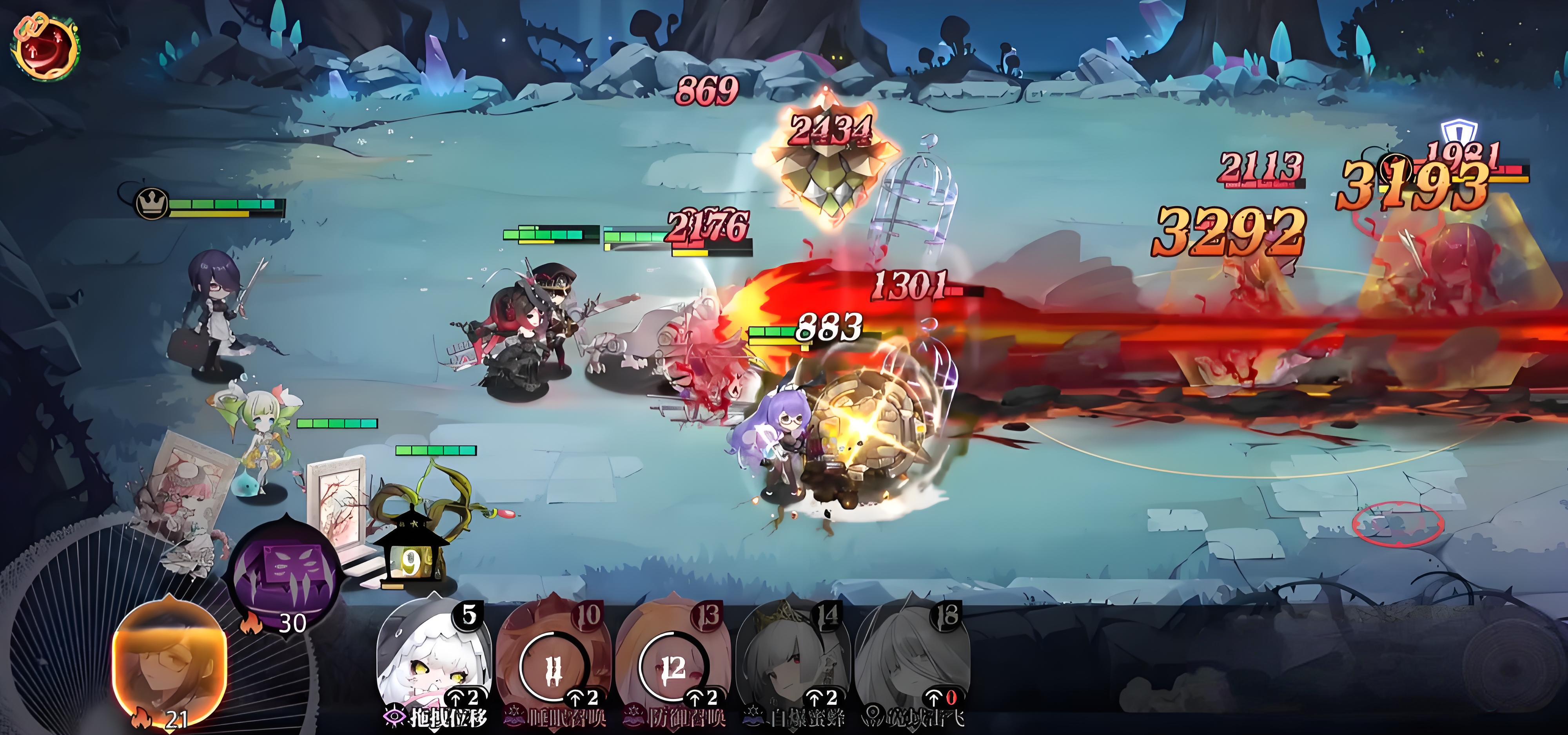 2、开局为随机两名敌人附加点燃,技能升级后附加人数增至三名,每回合还有概率为随机敌人追加点燃效果。