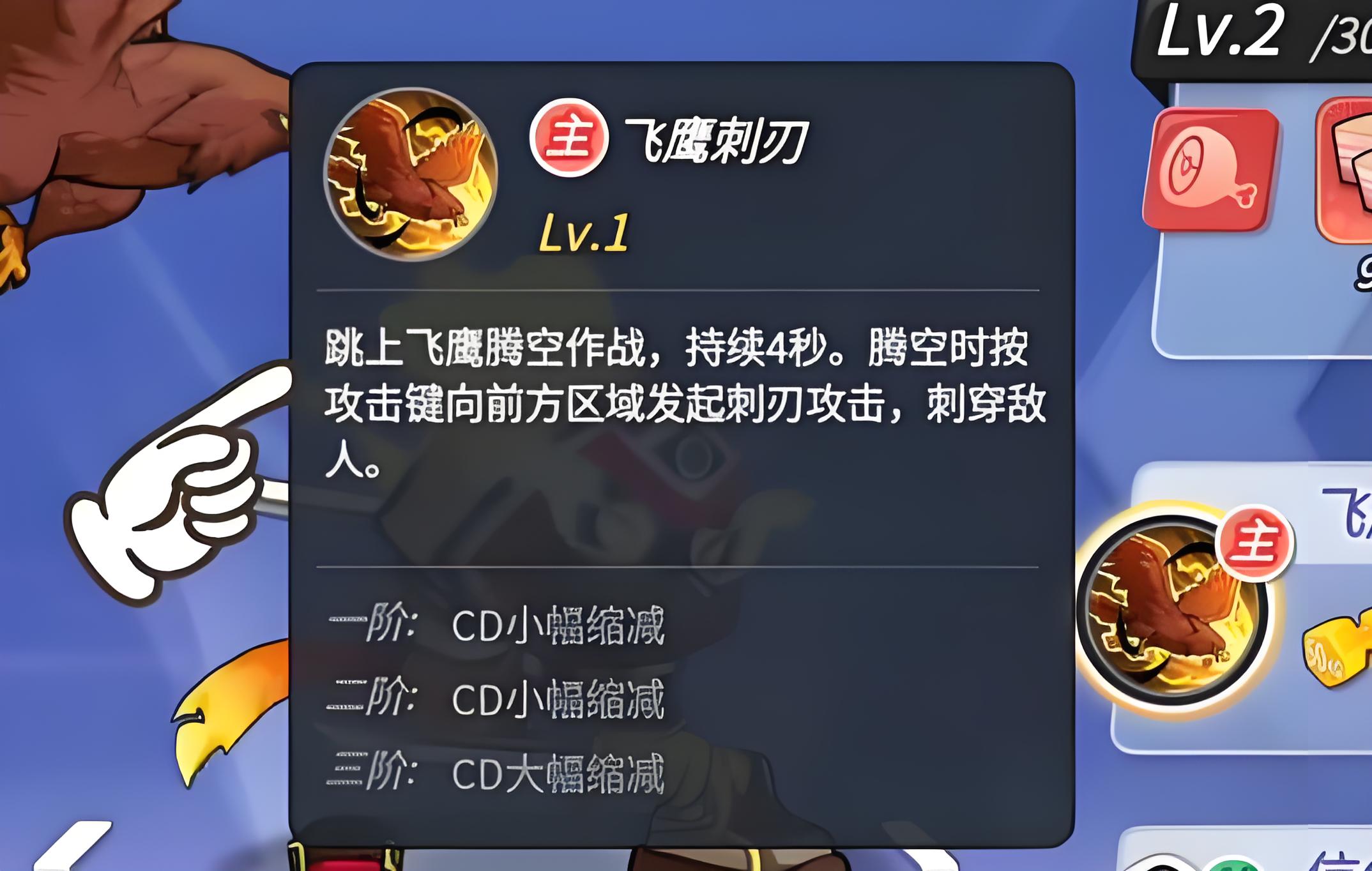 1、核心主动技能可召唤飞鹰跃上其背,进入持续四秒空中模式,打破地面移动限制获得更高机动性与全场视野。