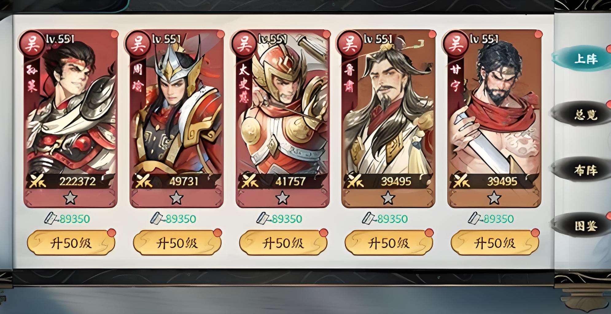 3、鲁肃有护盾和治疗能力保护后排,部分技能附加灼烧,孙策有控制和高生存属性,二者共同打造稳定输出环境。