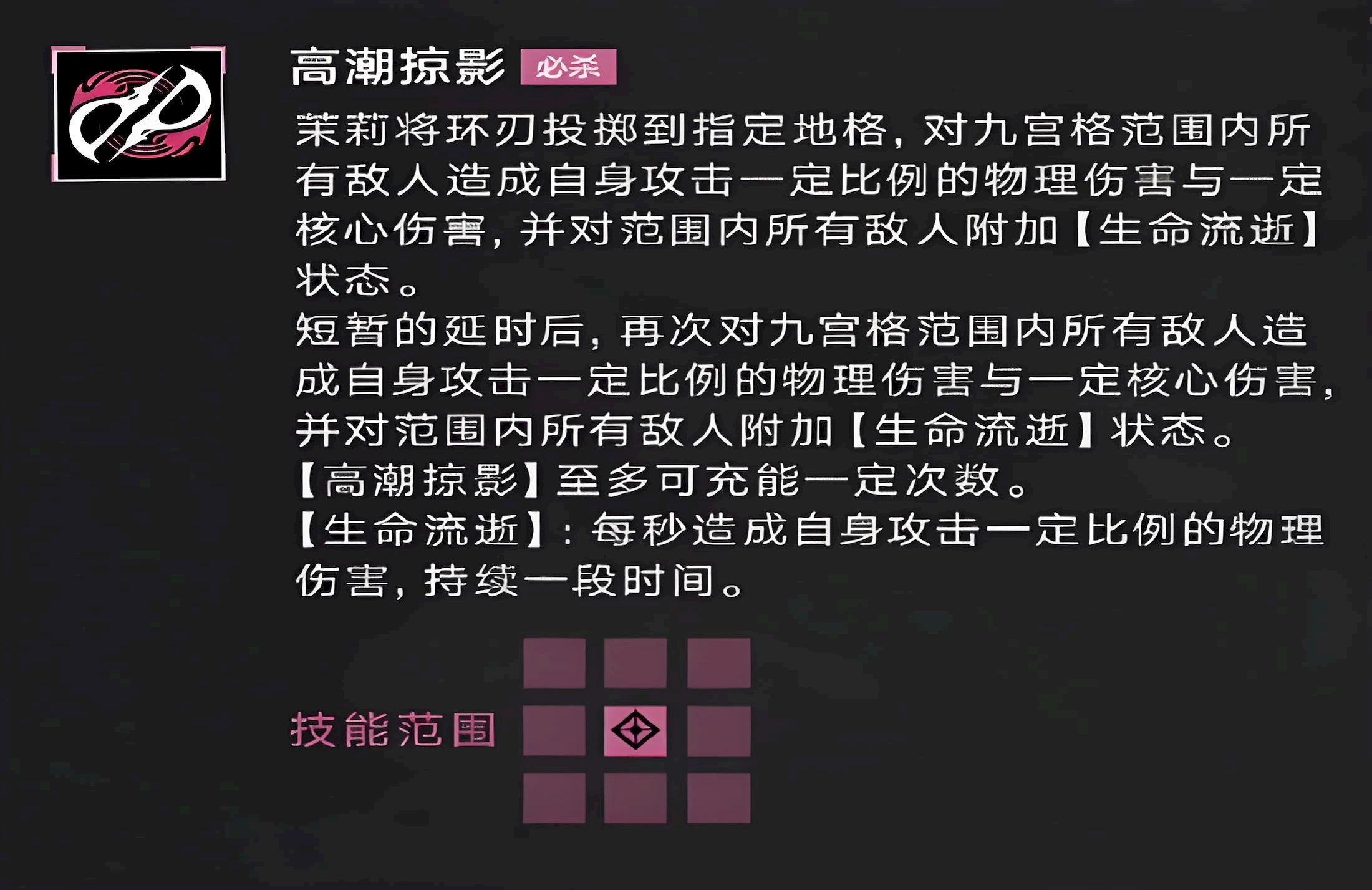 3、必杀技针对指定九宫格区域,两次触发伤害并叠加持续掉血状态,支持多次充能使用,为团队持续输出提供核心保障。