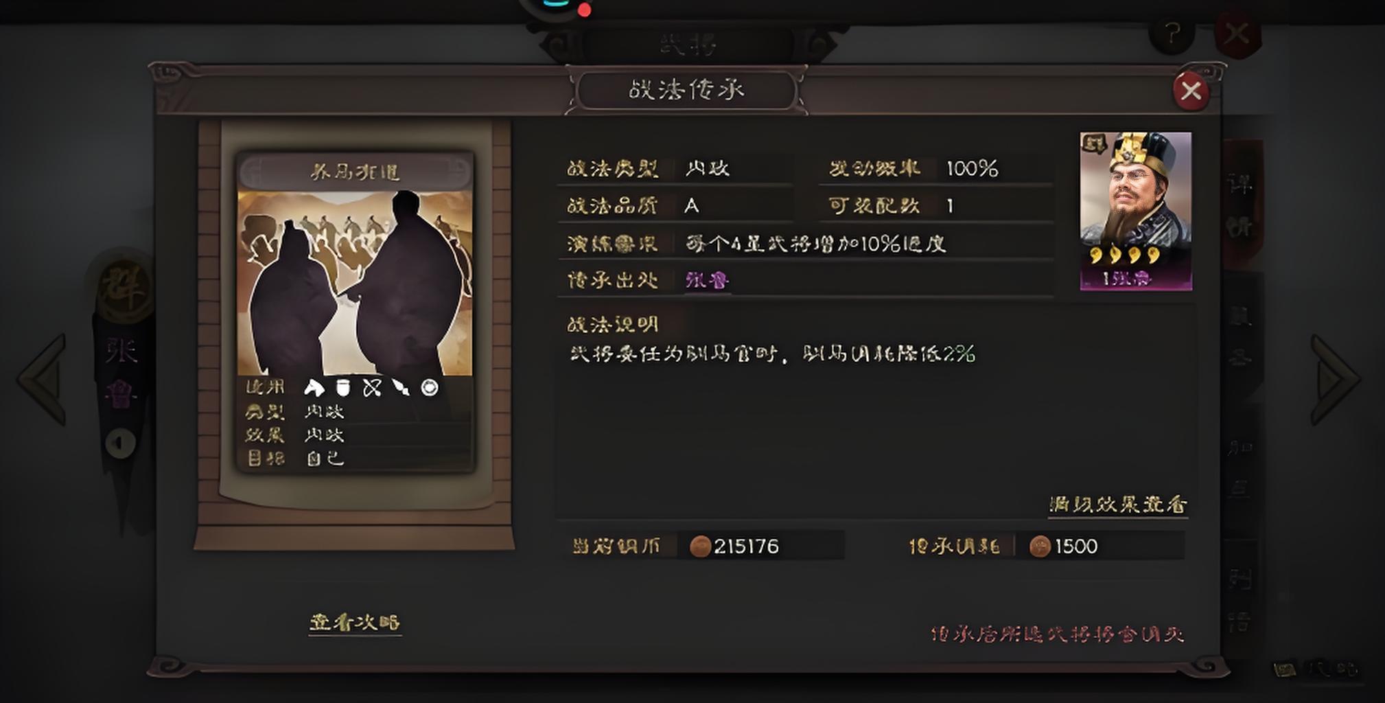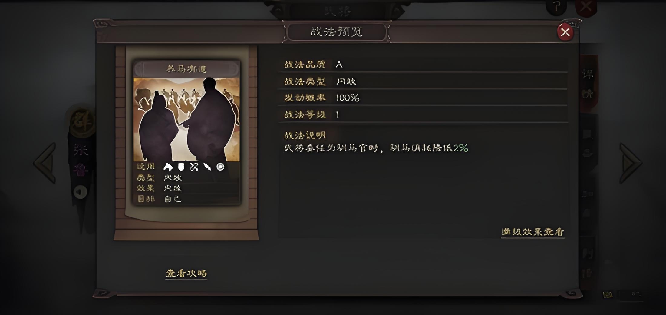 2、核心战法养马有道可降低敌方士气消耗,减缓其出征效率,容易将战斗拖入拉锯局面,对战时需避免陷入长时间消耗战。