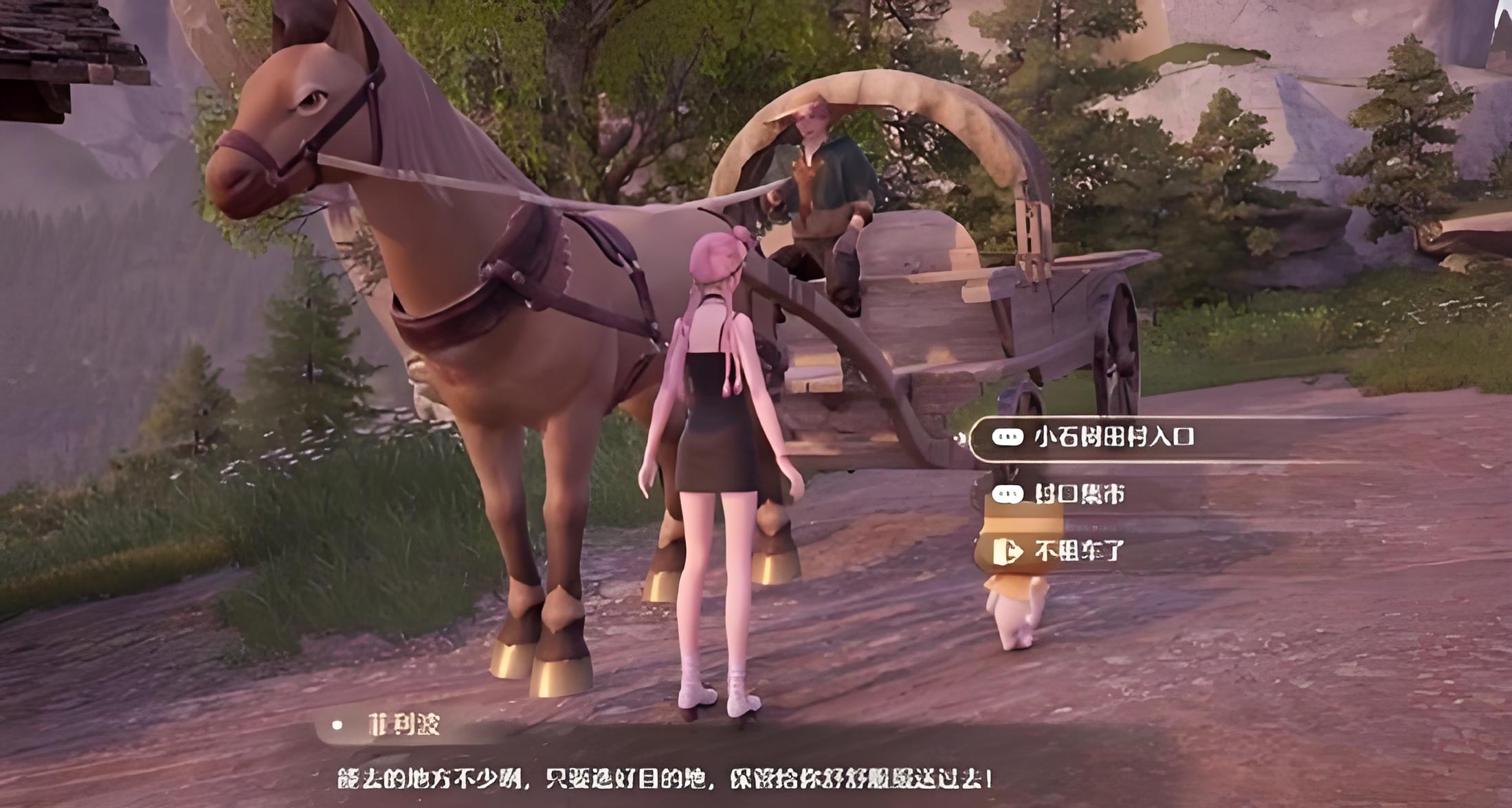 2、马车广泛分布于各个区域,渡口及主城贸易站附近均有布设,找到车夫完成对话就能选择目的地乘坐。