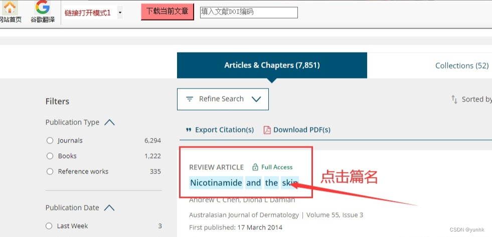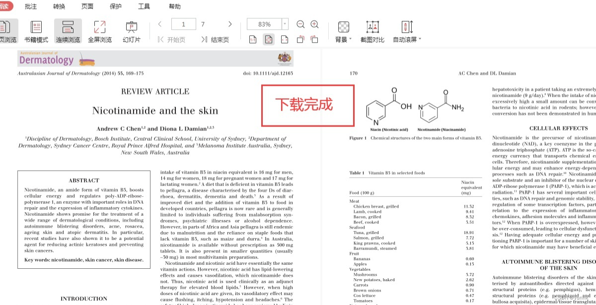 以文献"Nicotinamide and the skin"为例,当谷歌学术显示收费时: