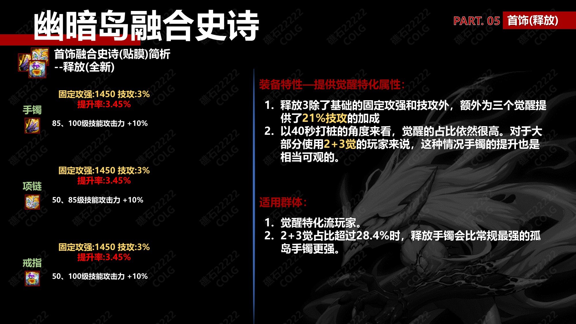 2.2+3觉占比超过28.4%时,释放手镯会比常视最强的孤岛手镯更强。