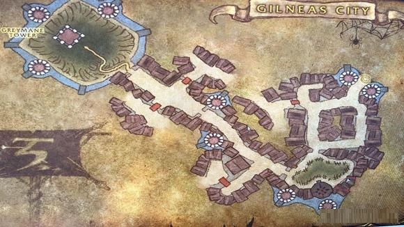 2. 根据任务描述,任务物品在吉尔吉斯的城堡的一个图书馆,去格雷迈恩之墙,进去有个城堡,是个40的副本,去里面拿任务物品,位置在上面的图上红圈。