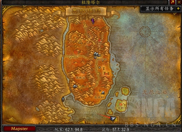 左上角的野猪人,右上角的火刃教徒(就是8 9级山洞里面的),右下角的库尔提拉斯人,右下角的回音群岛巨魔,凑齐四个地图,然后来到回音群岛最南面的小岛上。