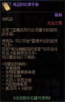【索利达里斯 - 普通地下城:蛇之树】的精英、领主有几率掉落[海盗的纪律手册],可开启隐藏任务,完成任务可获得蓝鹰守护神兽变身道具。