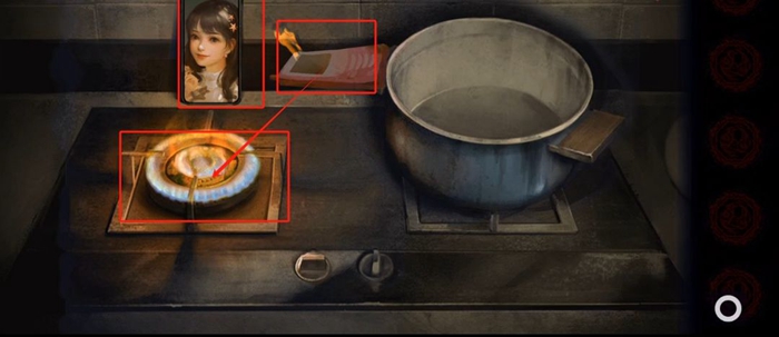 8.烧东西给彤彤,去桌子上捡纸手机——真手机放在墙边——纸手机放在炉子烧给彤彤