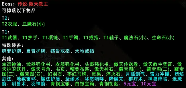 上图就是玛法岁月传说傲天教主的所有击杀掉落,希望对大家有所帮助。