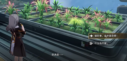 3、点击"调查"之后会出现两个选项,选择"做好事,徒手拔杂草!"