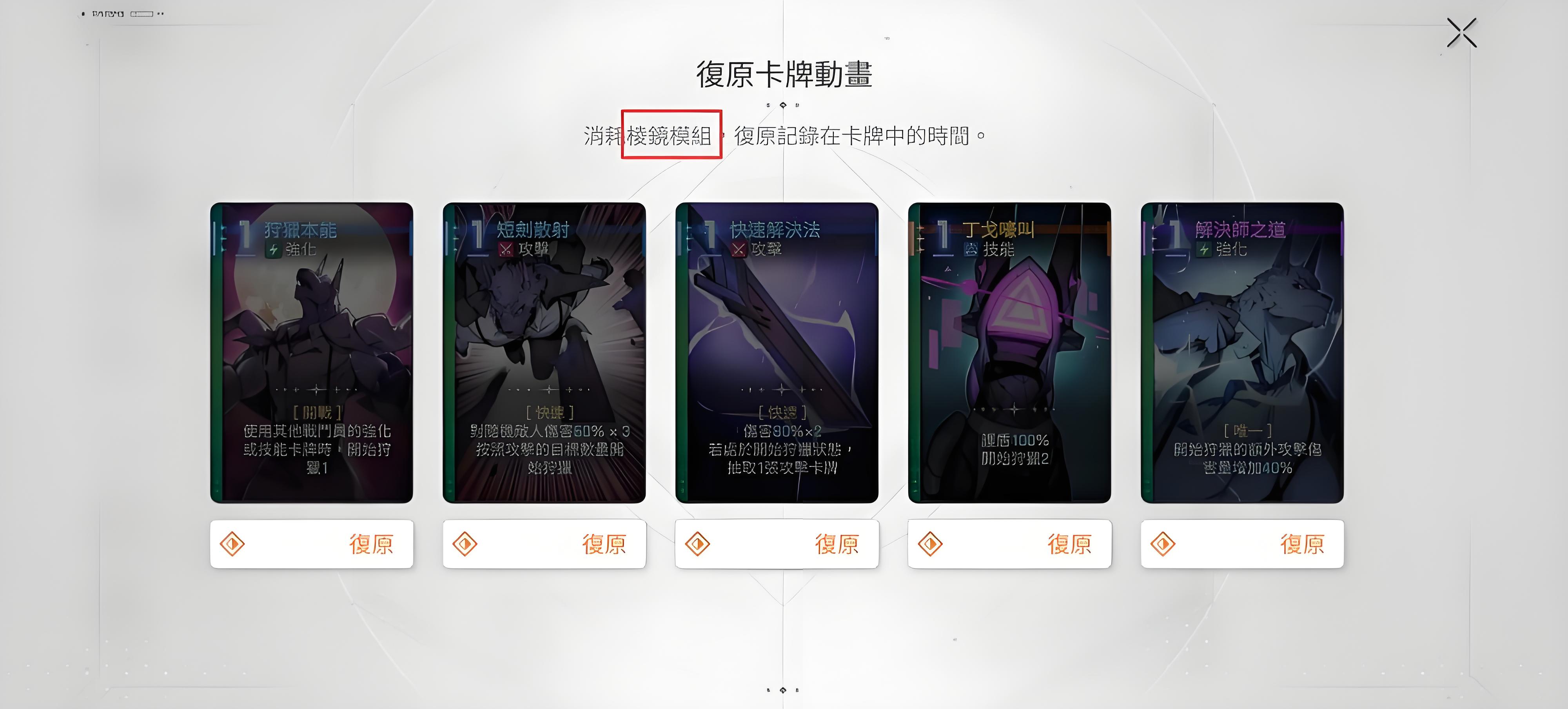 1、核心功能鲜明棱镜模组专注优化卡牌动画效果,使原本静态的角色卡牌变得更具动感与生命力,视觉呈现更炫酷,不附带任何战斗属性提升。