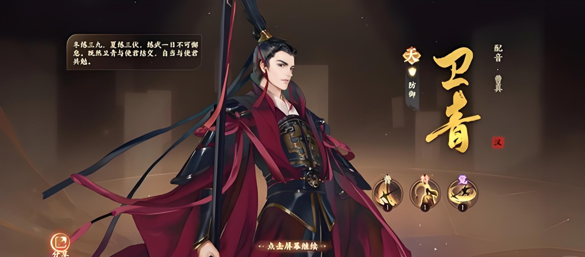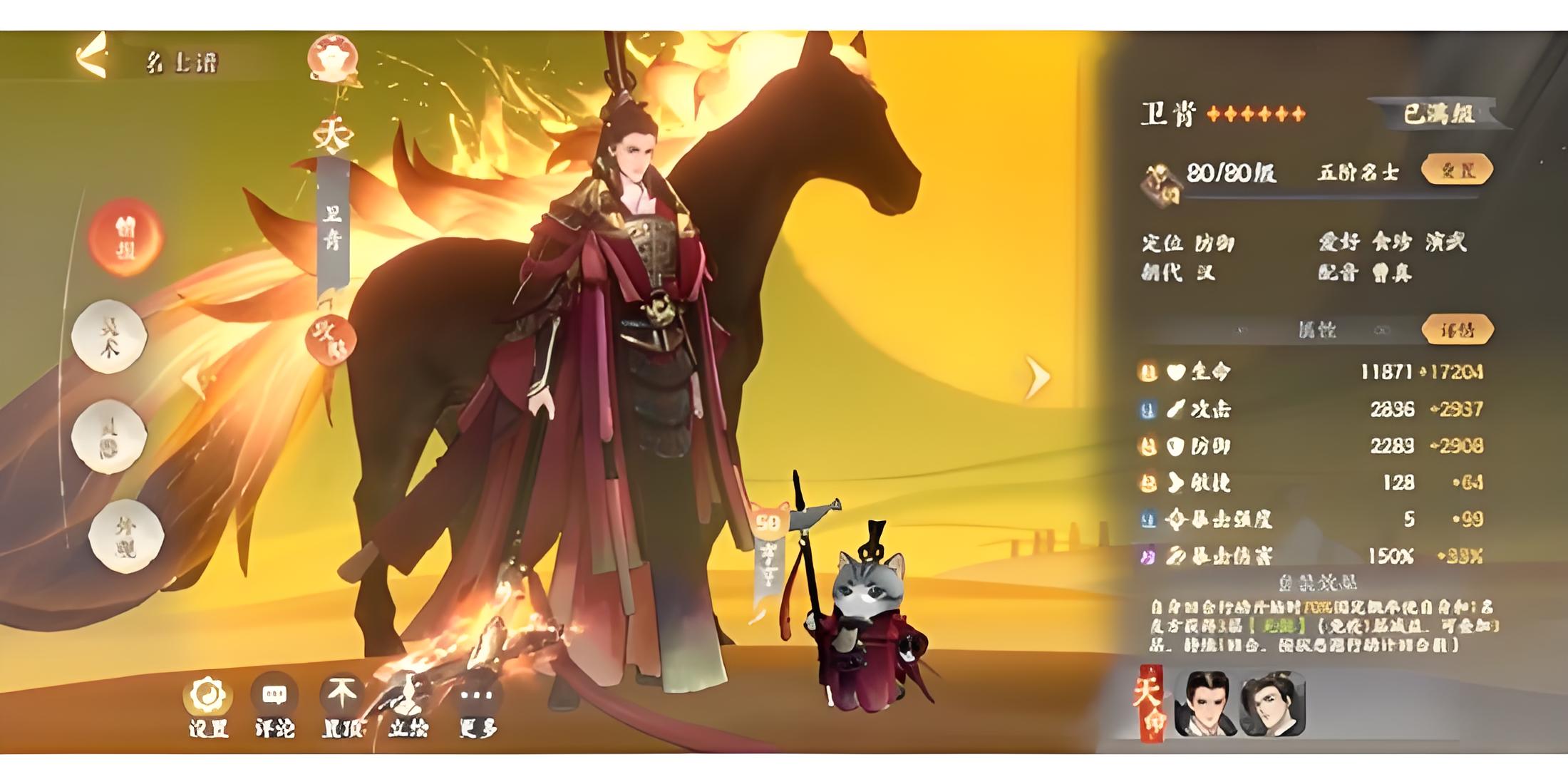 忘川风华录的卫青是汉朝代五阶防御型名士,拥有普攻减攻特性承伤觉醒群攻等实用技能,猫灵选择和装备搭配直接影响其战斗表现。无论是侧重保人还是兼顾输出,合理规划培养方向都能让其发挥关键作用。本文将详解技能效果属性特点猫灵挑选及装备方案,帮大家精准培养这位强力名士。