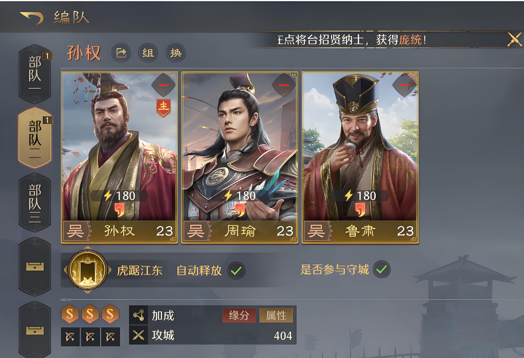 4、首选弓兵兵种,三位武将与弓兵契合度高,激活专属加成,发挥远程打击优势压制敌方前排。