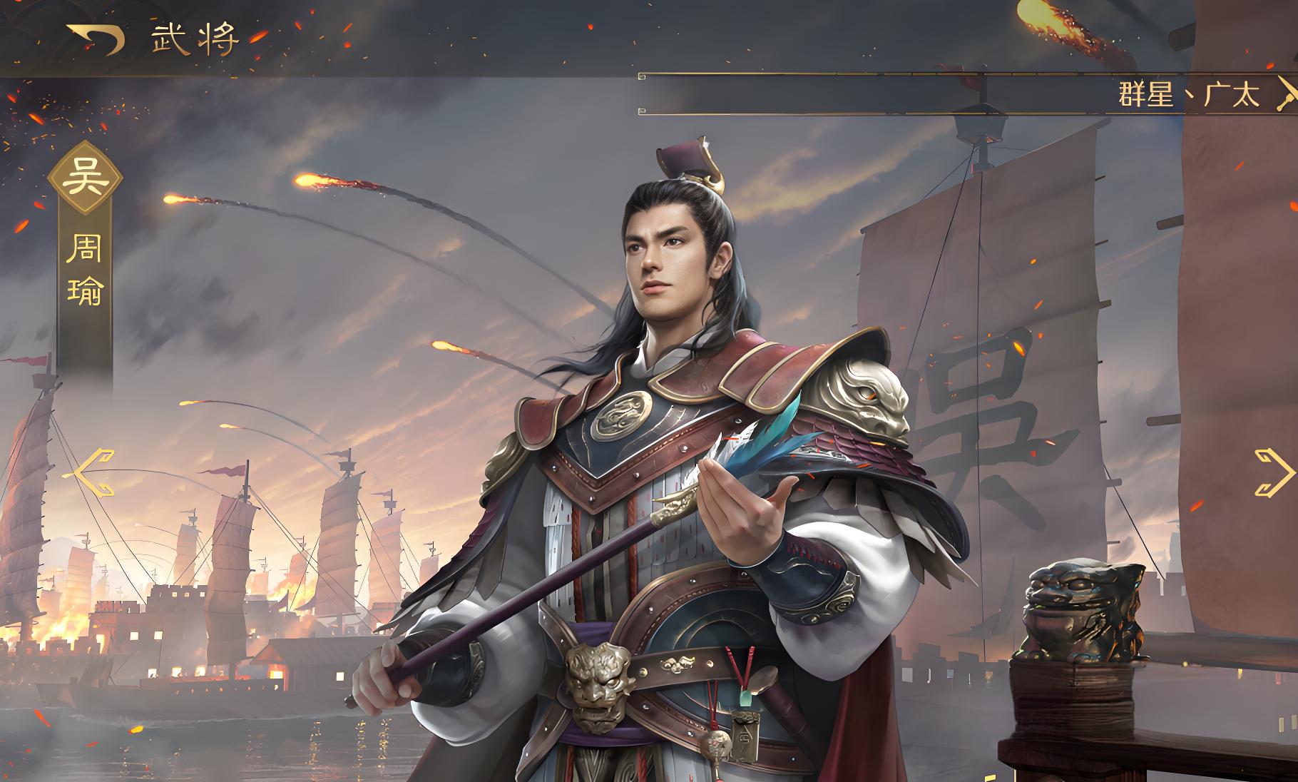 2、周瑜担任主C位核心输出,目标受火攻时提升自身伤害,带动火焰连锁,兼具单体点杀与群体灼烧。