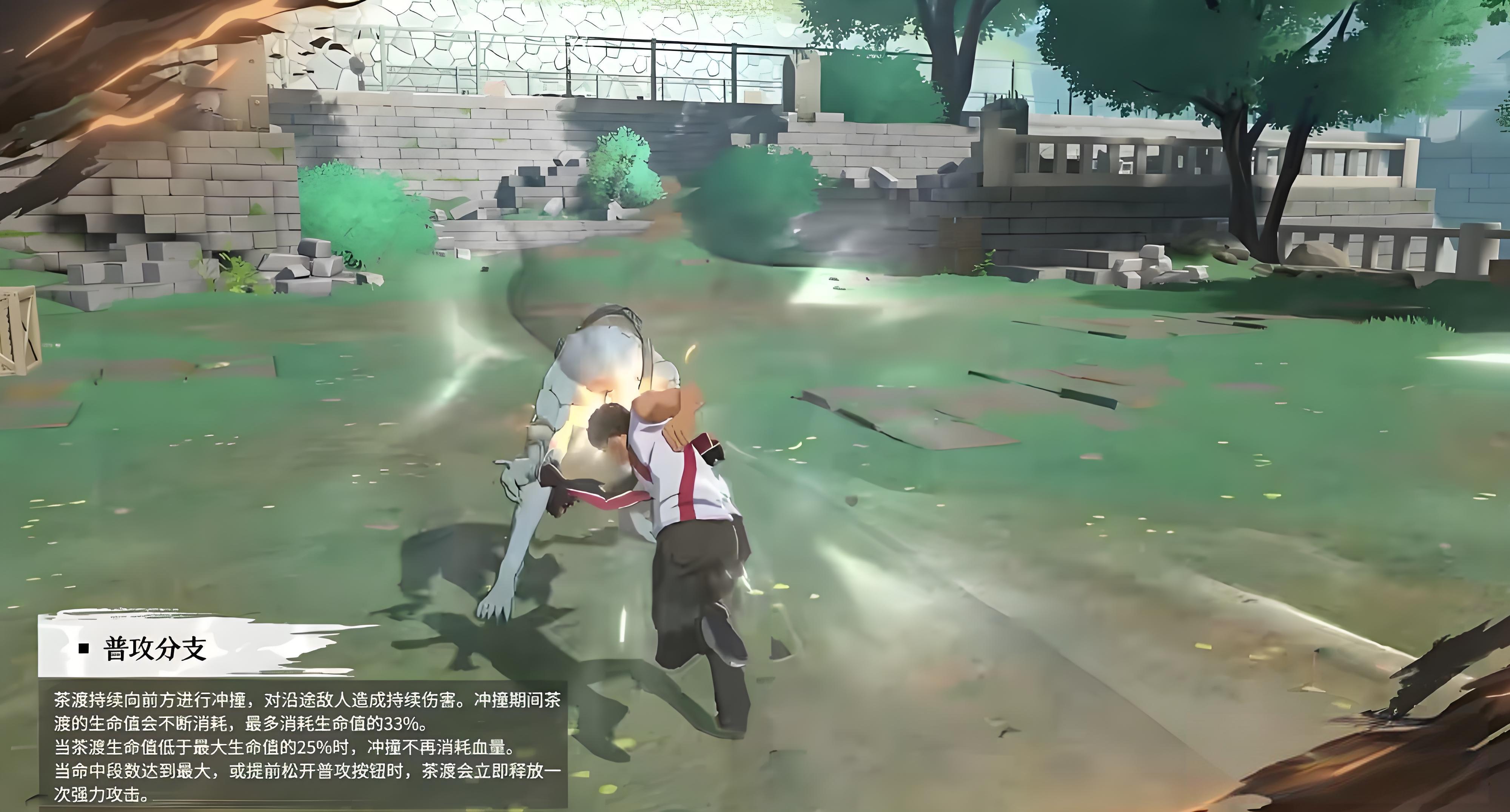 2、普攻包含五段攻击可积攒灵压,第四段后撤步能吸附敌人实现无限连击,长按普攻触发冲撞分支并造成持续伤害。