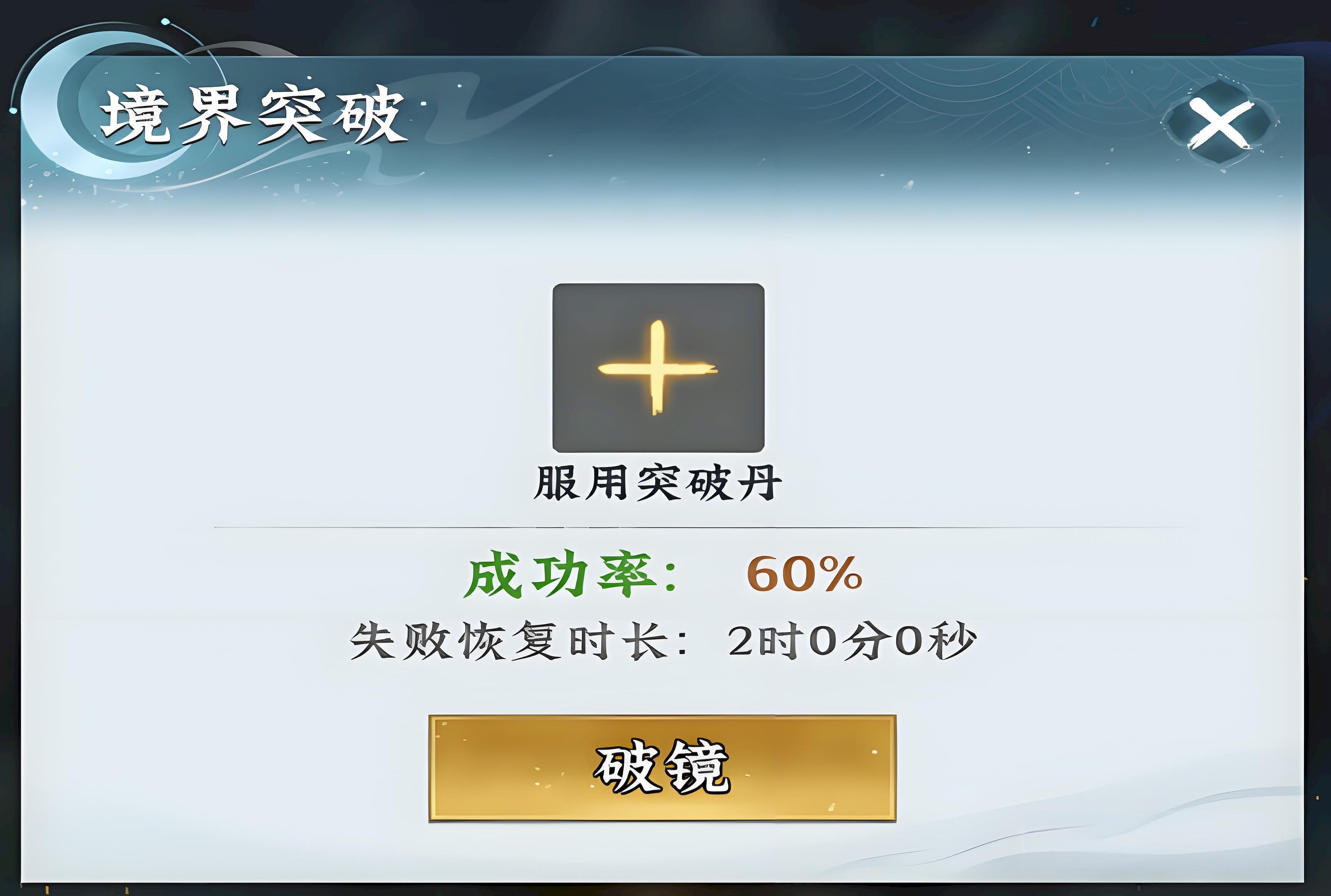 4、无可用丹药时可走无辅助路径,启用历劫成长机制,每次失败后下一轮基础成功率自动提升百分之二十。