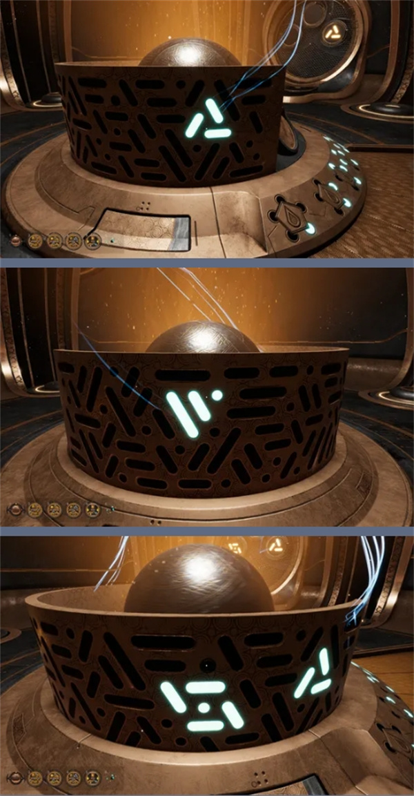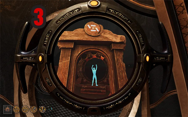 在柱子上拿到镜子神器后,可以用它看到另一个房间的版本,里面有一个蓝色全息人。