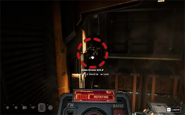 当你打开面向球体开放墙壁的焊缝时,四个外星无人机会立刻飞出。下面的四个按钮将显示每个外星无人机的视角。你可以转动顶部的屏幕,看看它们藏身的地方。