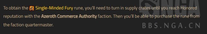 11:狂暴战双持符文 外网线索 交艾泽拉斯贸易局补给品货物到尊敬声望可买(未验证真假 附上截图