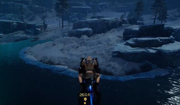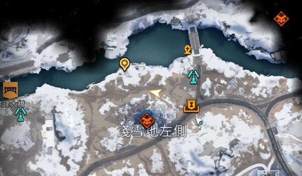 3、接这玩家可以来到地图的浅雪地左侧距离河对岸距离最近的地方。