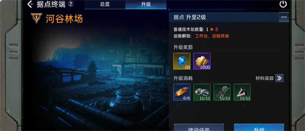 2、传送到传送点后,进入到最近的一处房屋中,点击游戏中的屏幕,点升级一栏中升级就可以解锁据点任务了。