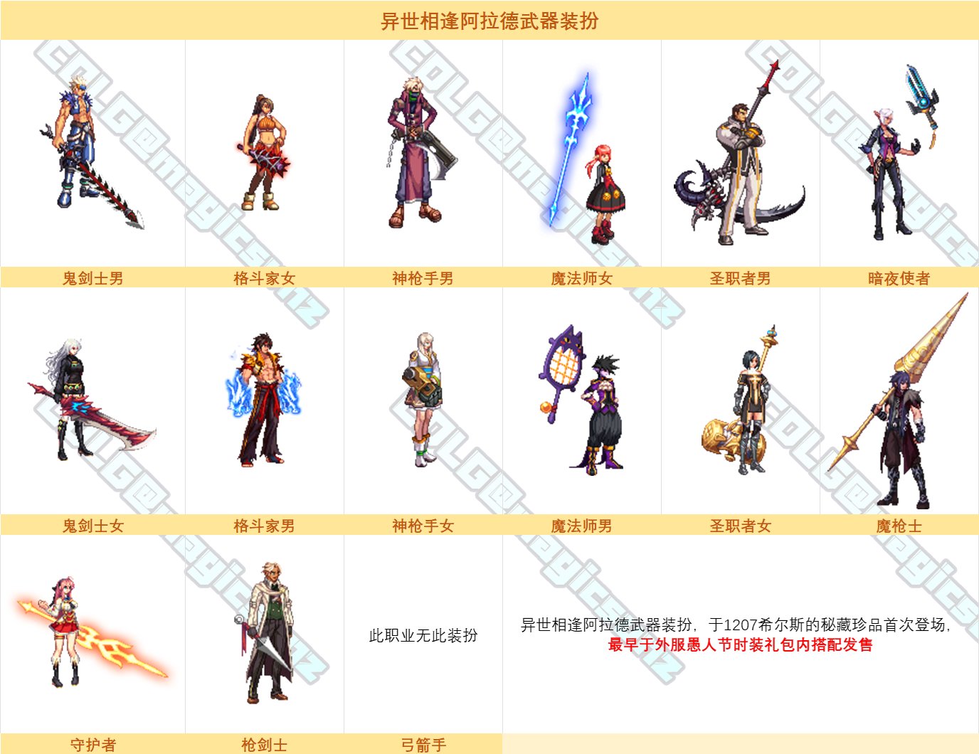 dnf异世相逢阿拉德武器装扮全职业外观可以见上图,可以通过希尔斯的秘藏珍品活动中获得,希望对大家有所帮助。