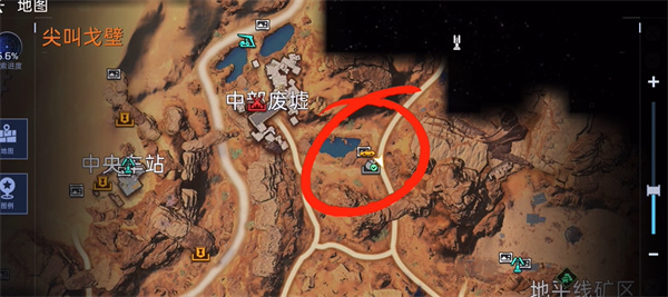 1、首先我们进入游戏跟随任务指引来到尖叫戈壁,位置如下图。