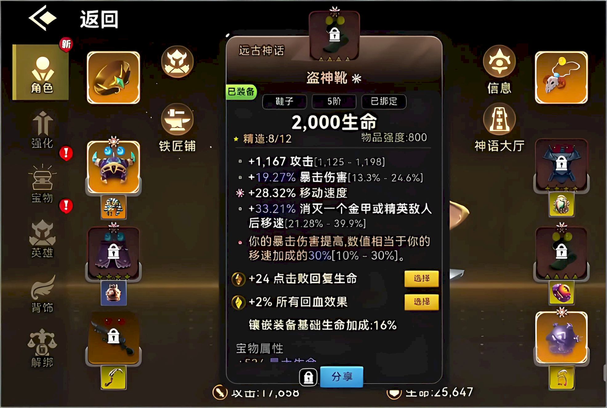 2、弓箭流武器适合选战士神力弓,其群伤效果可达190%,搭配高额攻击且附28%移速的盗神鞋,能搭建该流派基础框架。