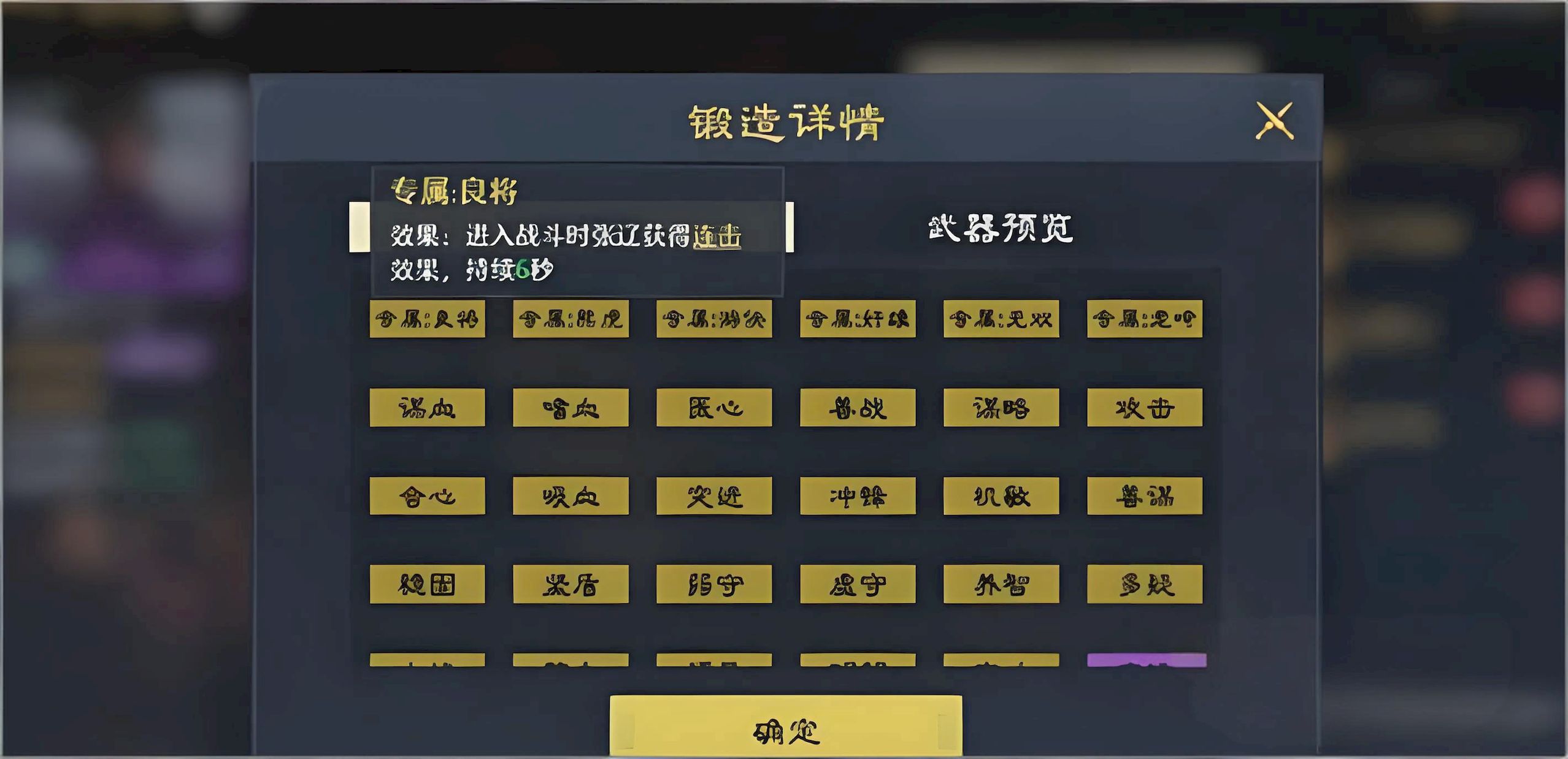 2、图纸分四档品质,橙色图纸装备基础属性优异,部分还可适合指定武将,能够激活额外的技能联动效果。