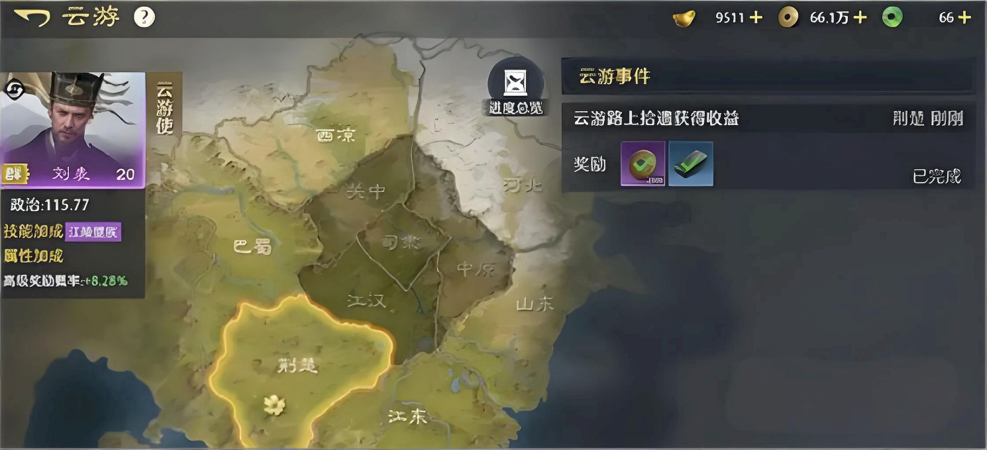4、云游系统是图纸主要获取渠道,每日有20次免费派遣机会,派遣武将可概率获得含橙色传奇图纸的各类图纸。