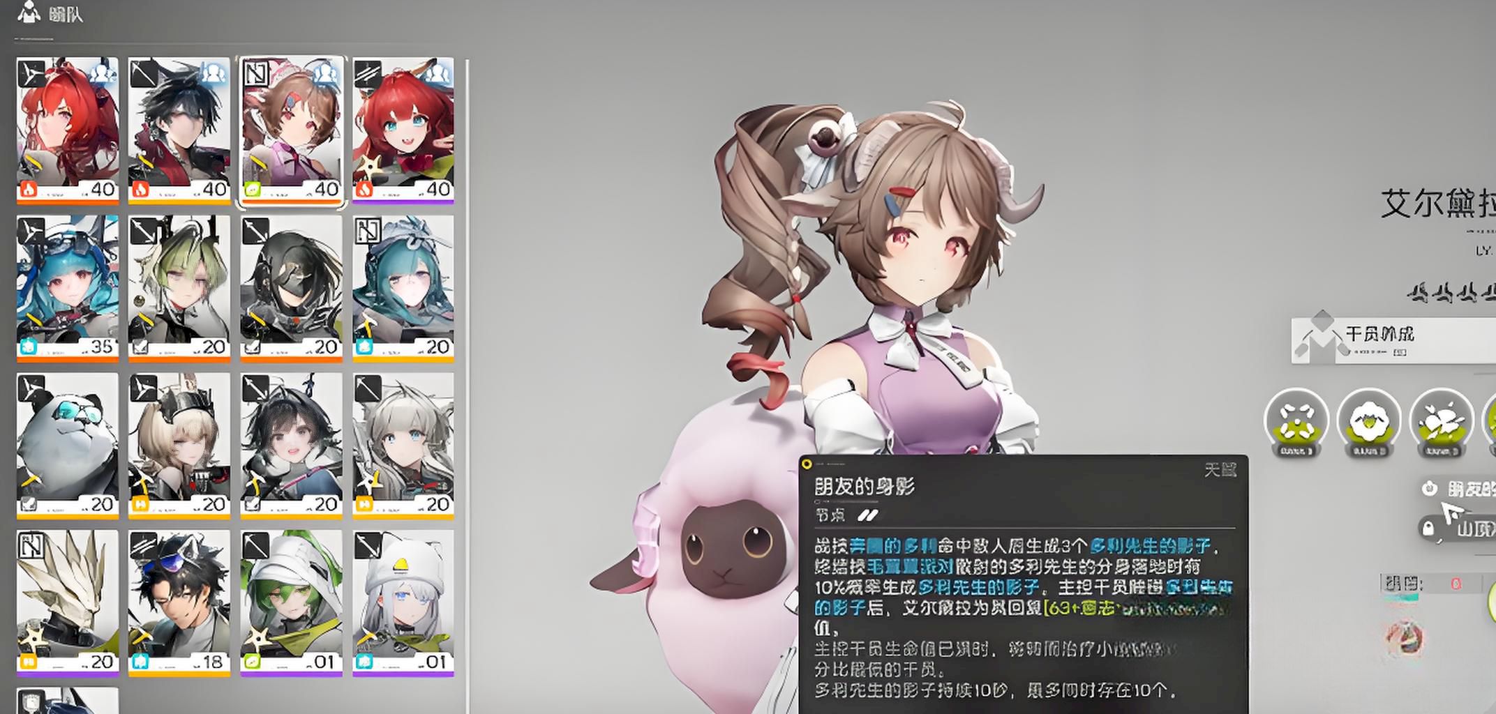 3、小羊负责队伍生存,群疗技能可抬升全体血量,稳定血线减少减员,提升高难副本通关容错与稳定性。