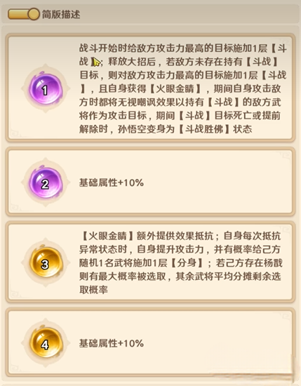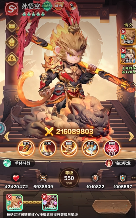 巨神军师存在诸多强力武将孙悟空是神话品质核心输出武将,它的普攻有着减免目标免伤的特殊机制,可对高防御目标形成有效压制,怒气大招不仅有高额单体伤害还附带眩晕概率,面对残血目标能触发额外普攻。它和杨戬共同上阵可获攻击加成,各类天赋还让其拥有暴击稳定、追击输出、状态抵抗等多样能力,本文会从多维度拆解该武将。