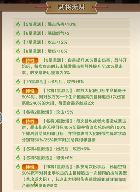 3、9星解锁动态暴击机制,自身暴击伤害提升30%,未暴击时暴击率最多累积20%,触发暴击后重置,保障输出稳定性与输出上限。