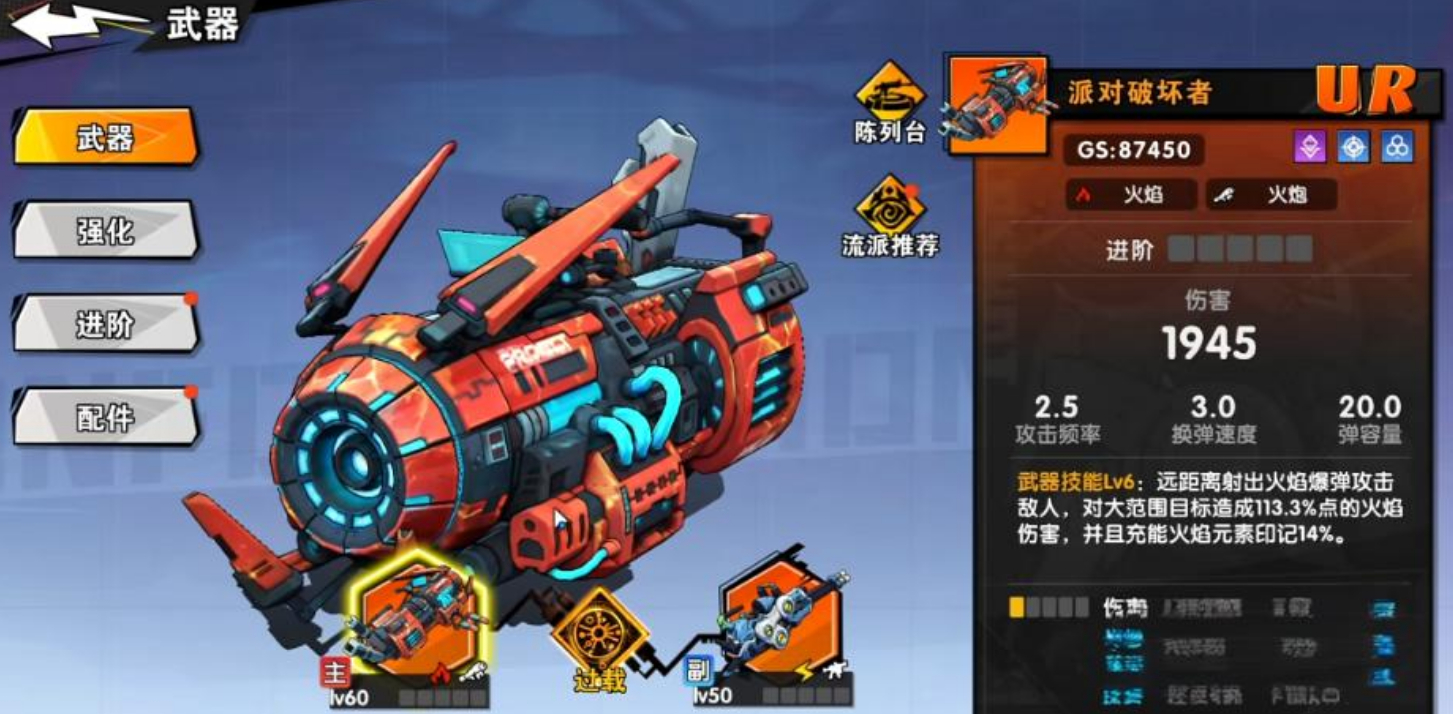 2、火焰系搭配派对破坏者火炮,中远距离精准打击,触发大范围爆弹,充能后激活印记加成强化持续输出。