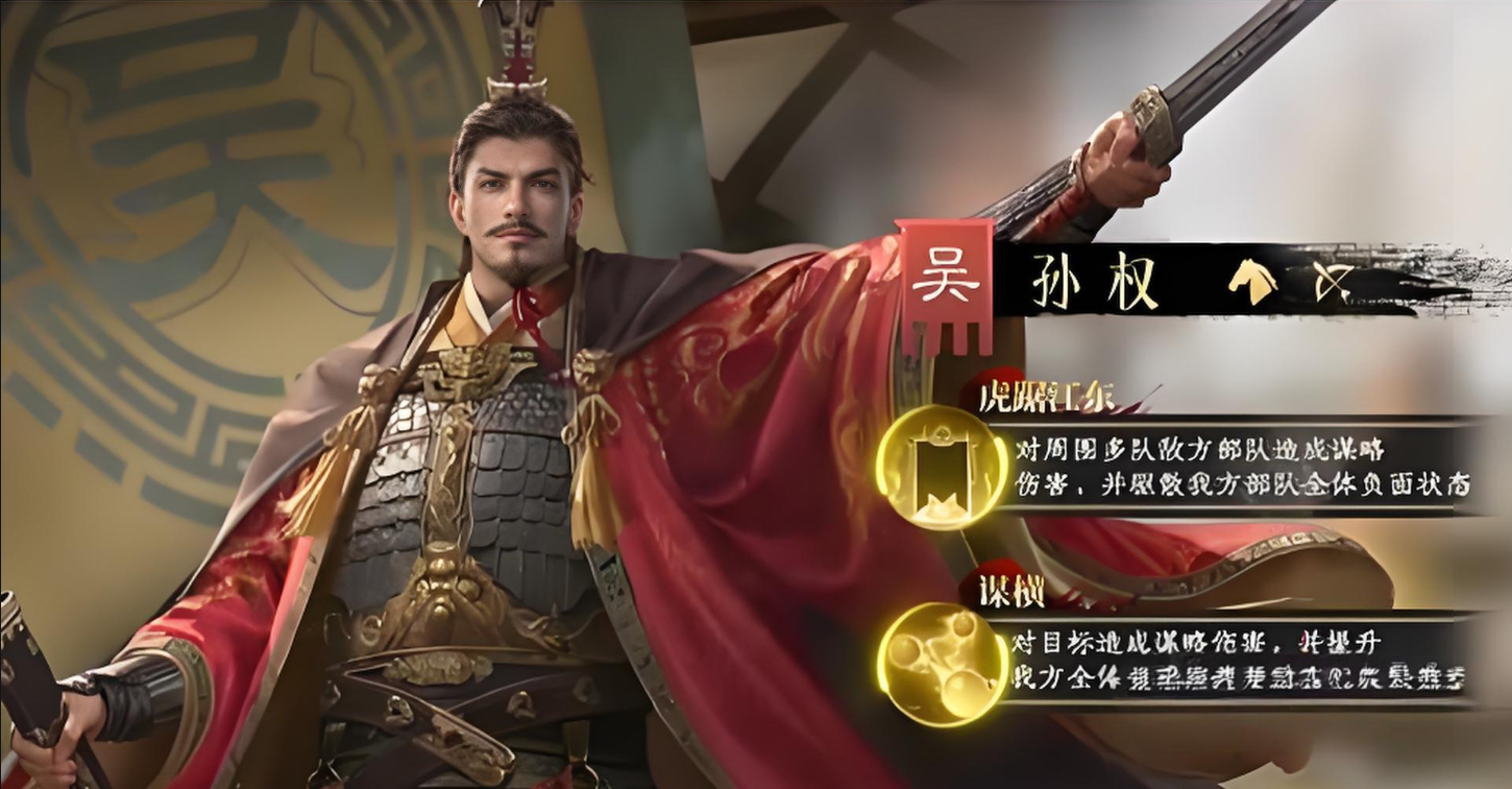 1、孙权作为核心续航支点,为全体友军稳定回血,驱散负面状态,前期配激昂鼓舞类技能,中后期选愈合回城类技能。