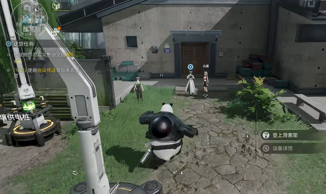 3、滑行过程中持续关注周围天线连接状况,保持路线连贯,抵达终点附近再下天线,找到对应npc交付包裹。