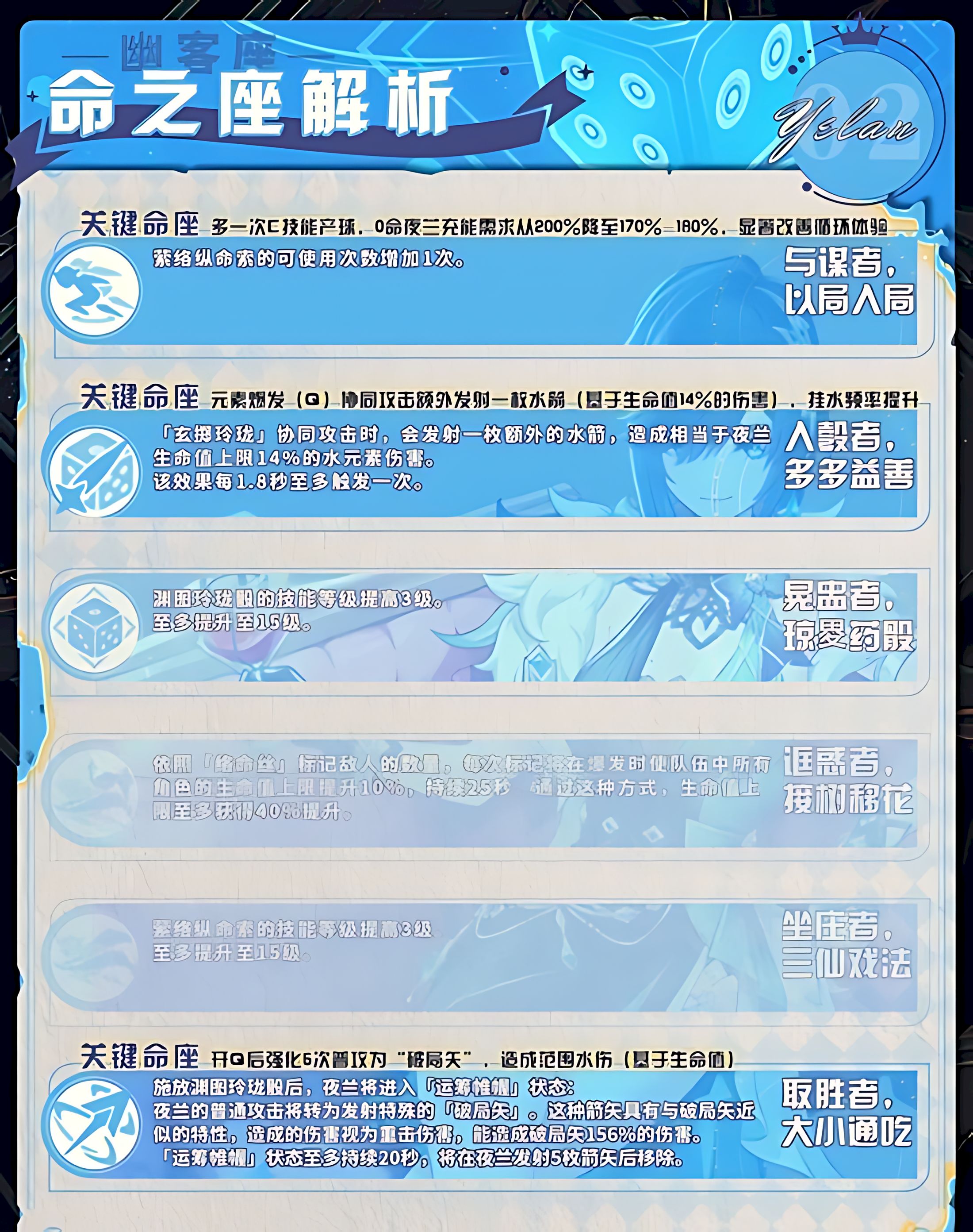 2、关键命座带来显著增益,一命增加元素战技使用次数,二命强化协同攻击伤害,六命让普通攻击转为强力破局矢。