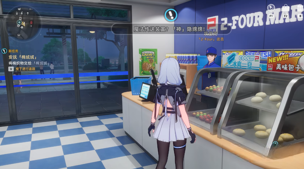 1、首要步骤是前往便利店与埃里克进行对话,沟通结束后承接魔法传送装置任务,解锁寻找棉绒绒的权限。