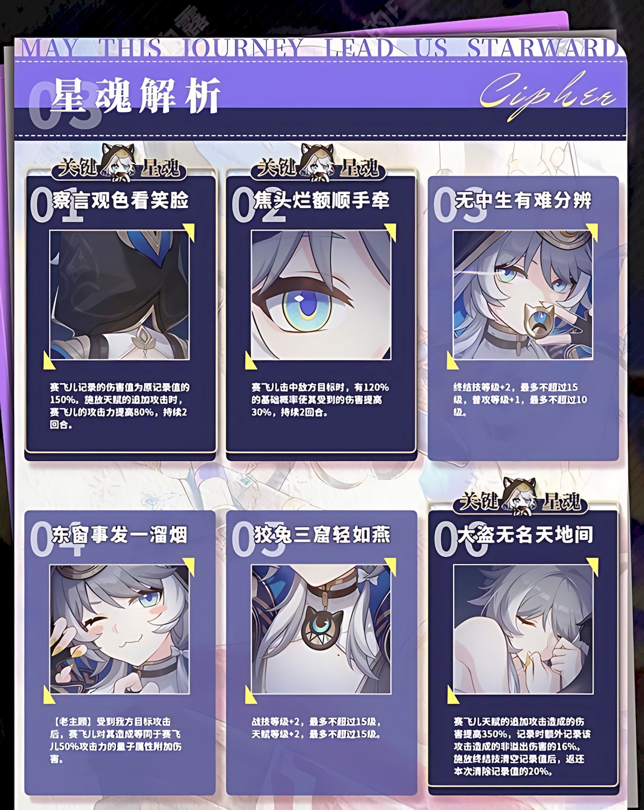 崩坏星穹铁道中赛飞儿是V3点7版本登场的角色,兼具治疗、辅助增伤与真实伤害输出能力,技能机制独特且培养维度多元。很多玩家在培养时对行迹升级、装备选择、星魂优先级及配队思路存在困惑,本文将全面拆解相关核心要点,帮助玩家科学培养发挥其最优战力。