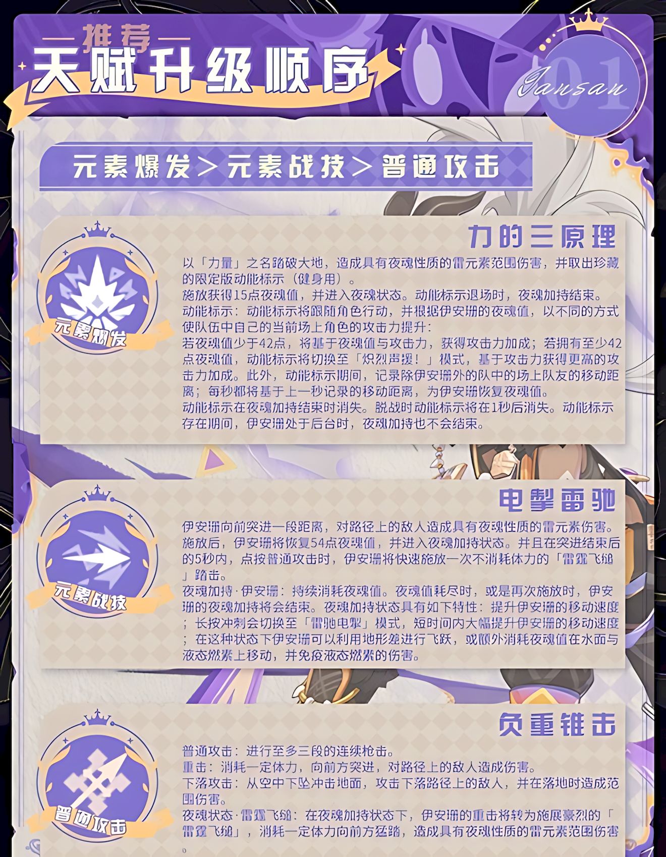 1、天赋升级需侧重元素爆发其次元素战技最后普通攻击,这样的顺序能最大化提升辅助增益效率,让队伍整体输出能力得到稳定强化。