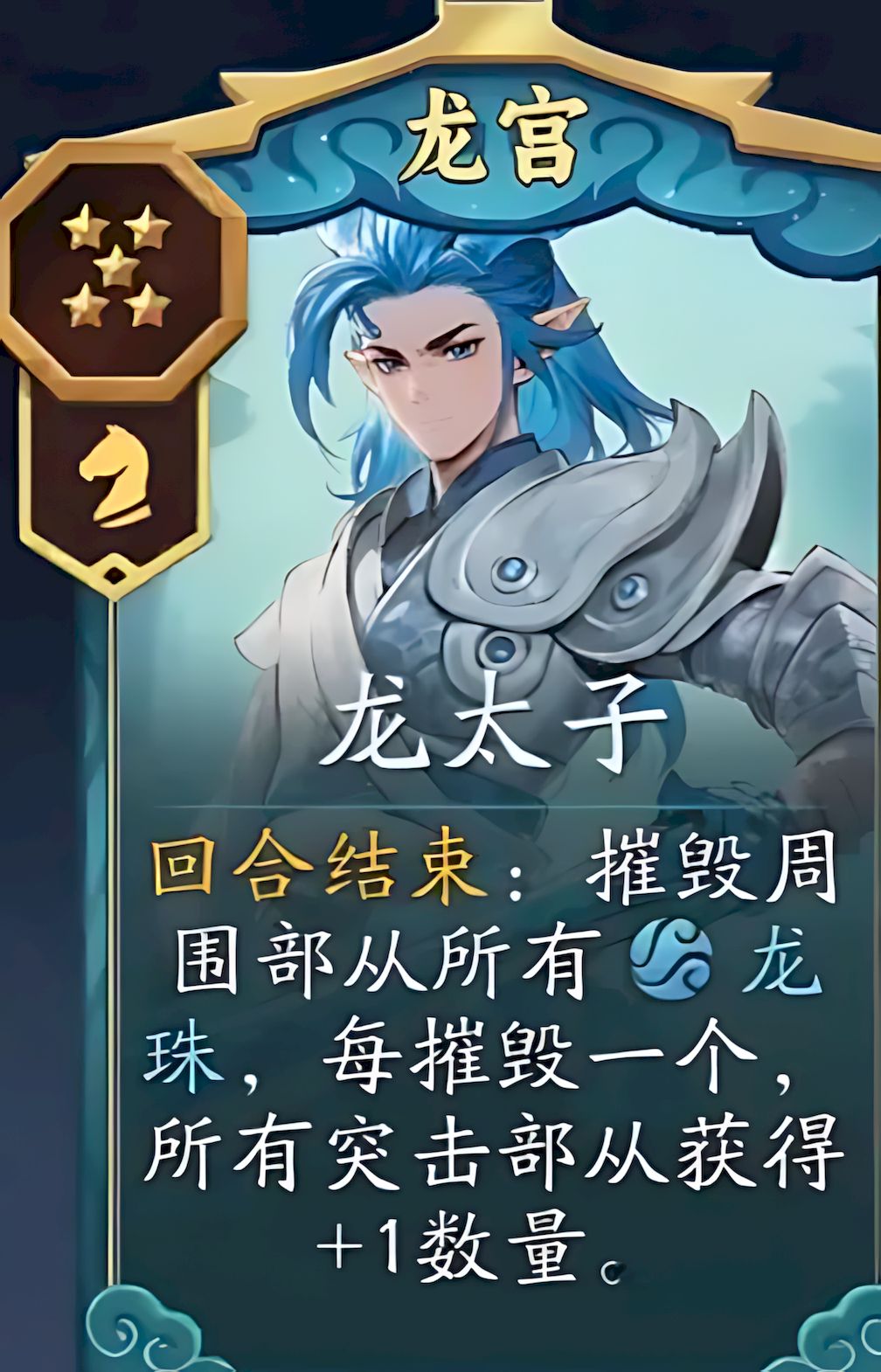 1、阵容核心是摧毁龙珠强化骑兵,主选龙宫阵营,开局拿文瑶君获取永恒龙珠,龙太子负责摧毁龙珠,为所有突击部从提供数量加成。
