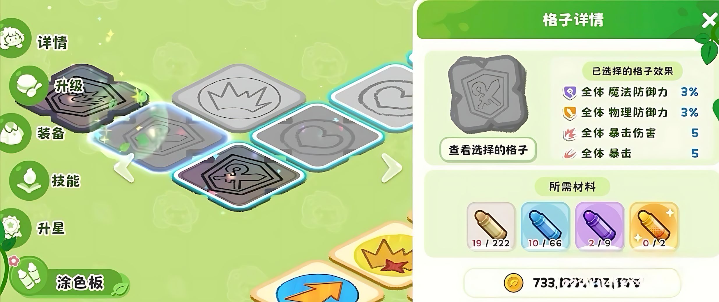 5、培养方向明确具体,建议直通前行之路坨三格子成为纯色队伍主力支撑,不建议开启我心中的灯塔坨二格子,其易伤带来的效益较低。