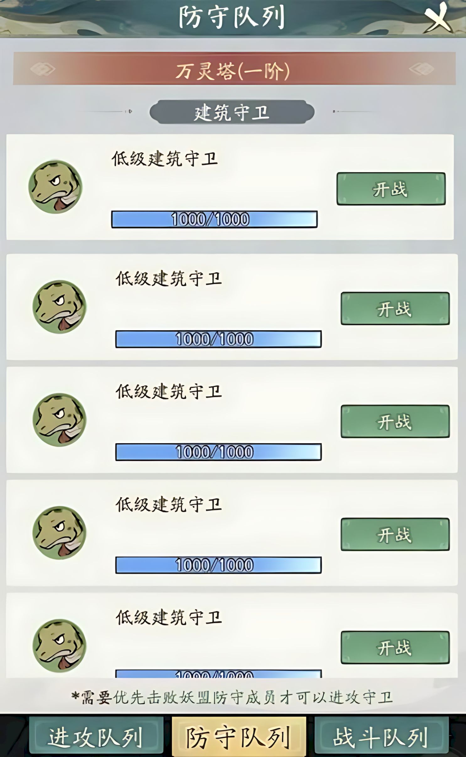 2、每处据点都有守卫镇守击败一名守卫扣除建筑1点生命值,建筑生命值归零时完成最后一击的妖盟将获得控制权并持续累积对应积分。