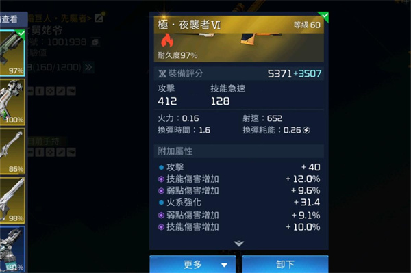 5、右边是数据栏,可以看到装备的数据和熔炼的效果。