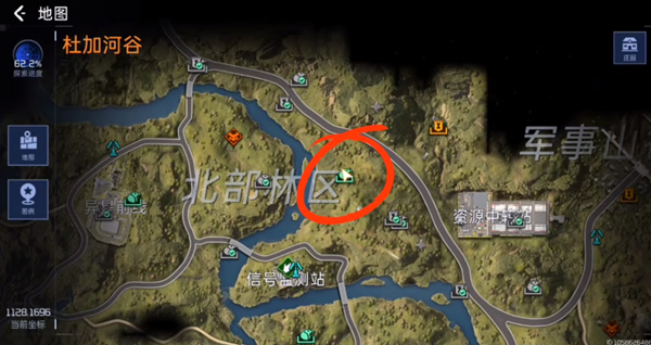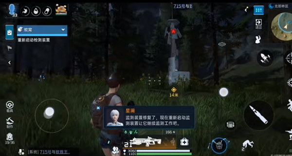 1、首先需要玩家来到北部林区右上角这个,这边有个信号塔装置,在这进入任务即可。